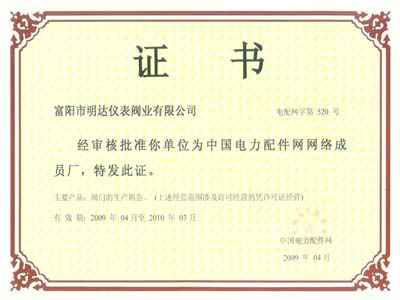 电力配件证书